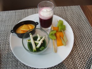 Nous avons donc pu choisir des boissons chaudes (café, chocolat chaud, thé ou infusion) ou fraîches (jus de fruits, smoothie,…), une belle sélection de pains (baguette, pain de campagne, céréales, pain de mie), des viennoiseries, des céréales et des gâteaux. Les sodas et les boissons alcoolisées sont hors forfait.