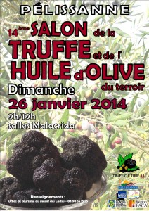 La 14e édition du Salon de la Truffe et de l’Huile d’Olive du Terroir aura lieu le dimanche 26 janvier 2014 à Pélissanne, de 9h à 19h, salles Malacrida.