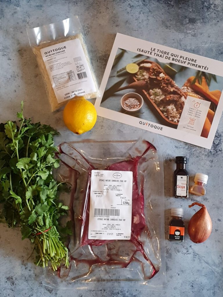 - 250g d’émincé de boeuf charolais (la viande contenue dans le panier à cuisiner Quitoque était vraiment de bonne qualité et très tendre !)
